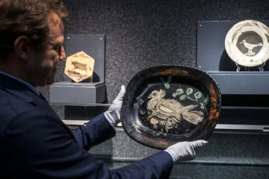 Të piktuaruara nga vetë dora e mjeshtrit Pablo Picasso, shtatë pjata dhe enë qeramike janë shitur në një ankand në Gjenevë për një shumë totale prej 290,000 euro. Këto vepra...